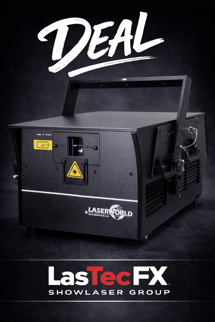 The Laserworld PL-50.000RGB Hydro comes with integrated ShowNET network interface and free laser show software. Details in the box below.