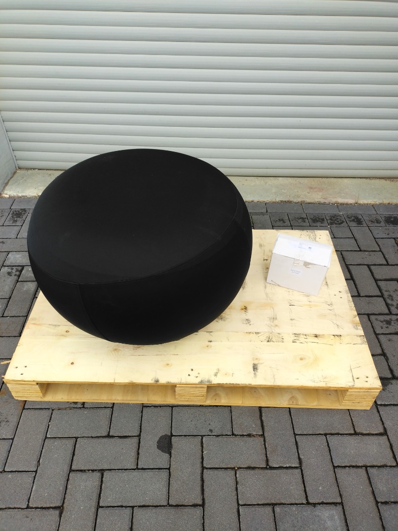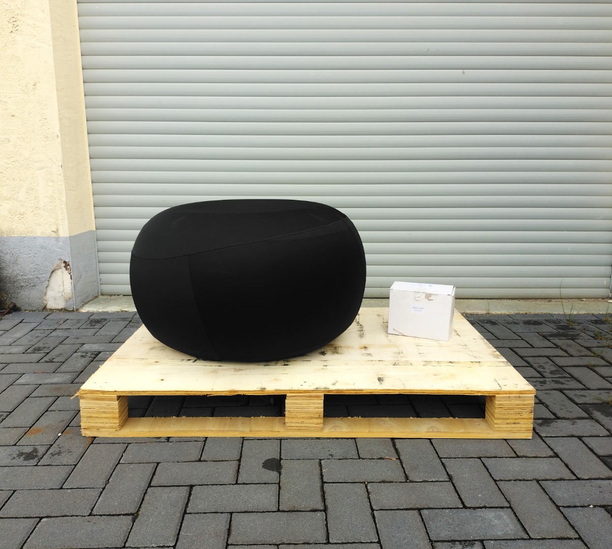 Der Hocker wird mit Luftpumpe und weißem oder schwarzem Bezug angeboten. Auch weitere Air Hocker und Stühle stehen zum Verkauf.