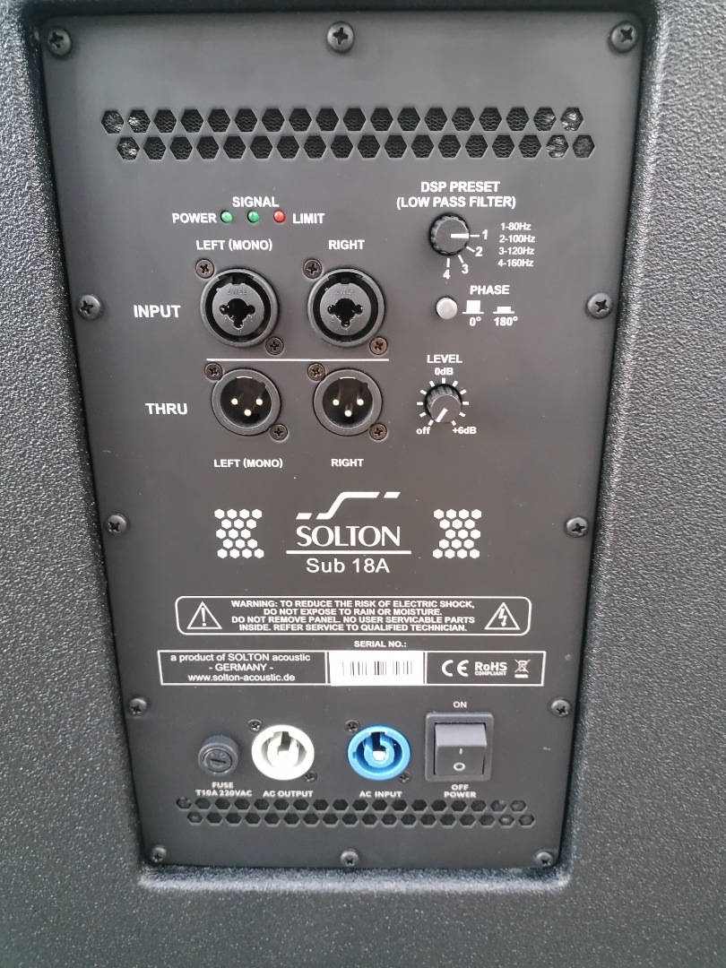 Der Solton aart SUB 18A: ist ein einzelnes 18-Zoll-Subwoofersystem mit direkter Abstrahlung und eigener Stromversorgung. Es wurde entwickelt, um dem Mittelhochton- und Fullrange-Lautsprechersystem in verschiedenen Mobil- und Mobilgeräten eine leistungsstarke und wirkungsvolle Basswiedergabe zu verleihen installierte Anwendungen.