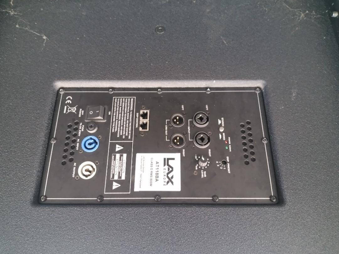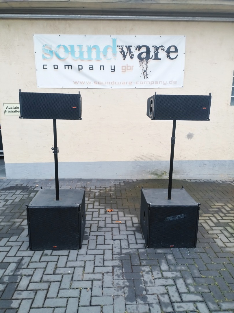 Die Tops sind mit jeweils zwei 8" Speakern, einem 1,4" Horn und einer RMS Leistung von 500W ausgestattet sind. Die Bässe sind 18" Bässe 800W RMS.