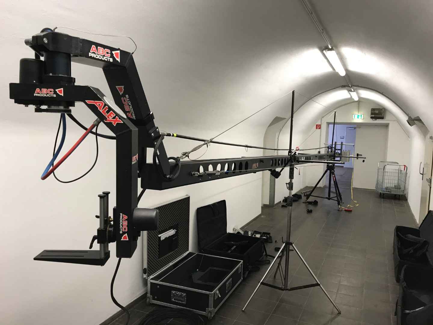 Der ABC Kran (9,4 Meter Gesamtlänge) ist ein leichtes System für Kameras bis zu 25 Kilogramm Gewicht und einem Hub von max. 7,90 Metern.