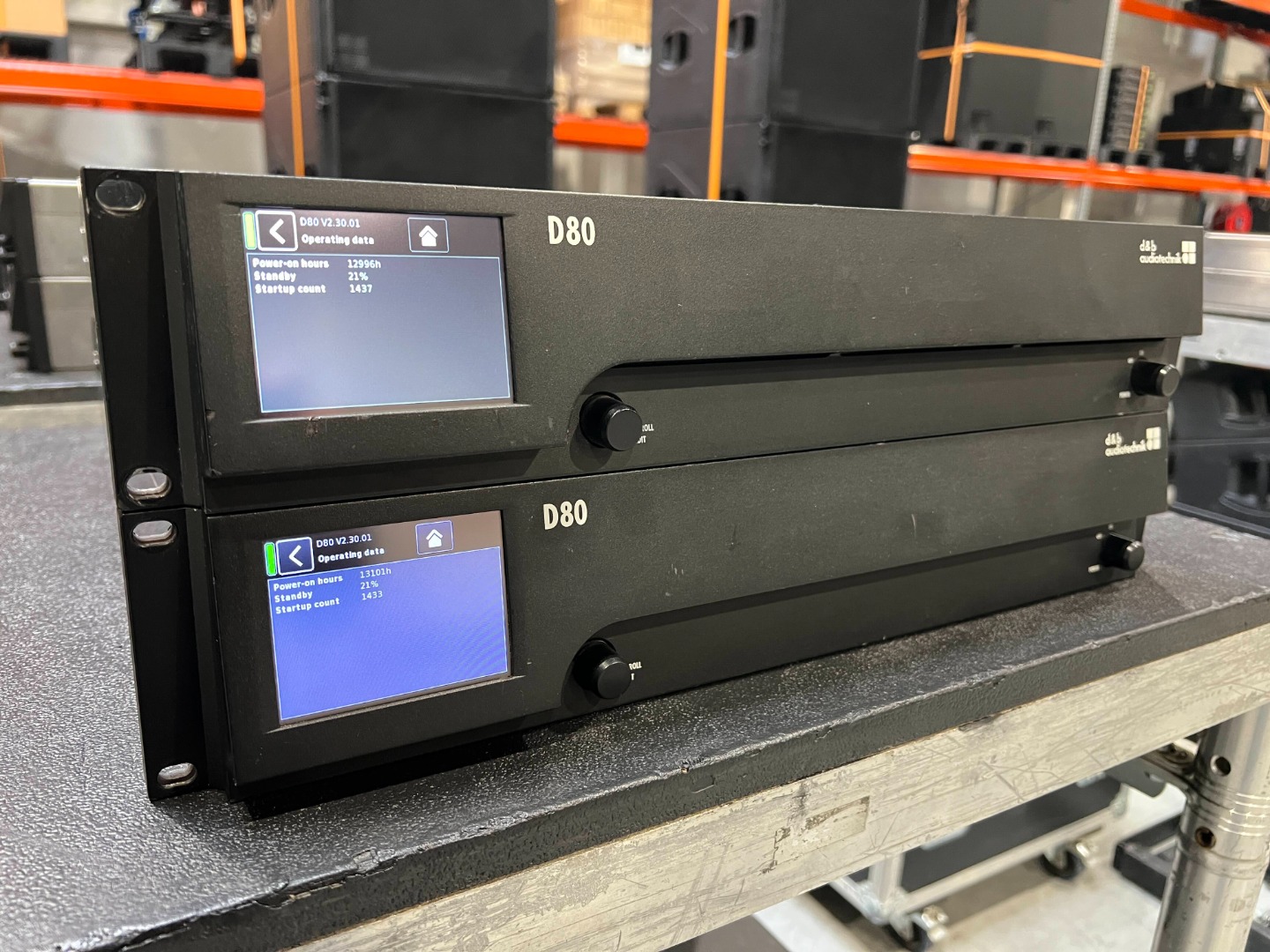 - 12x D&B Audiotechnik D80 amplifier (operating hours are shown in the photos)