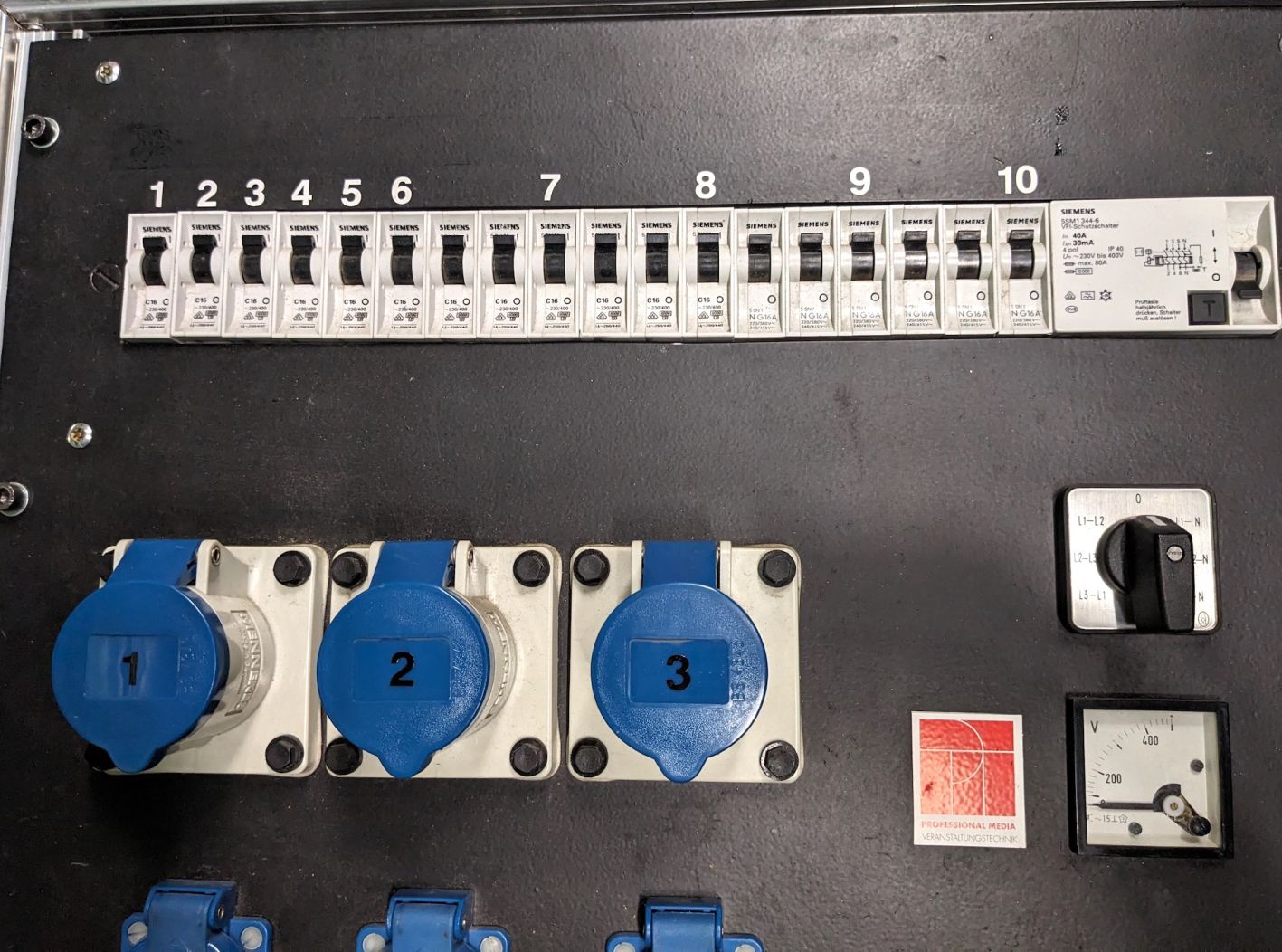 32ACEE > 4x 16ACEE + 3x16blau + 3x Schuko im Flightcase (53cm x 57cm x 77CM H) Nr.: 6101