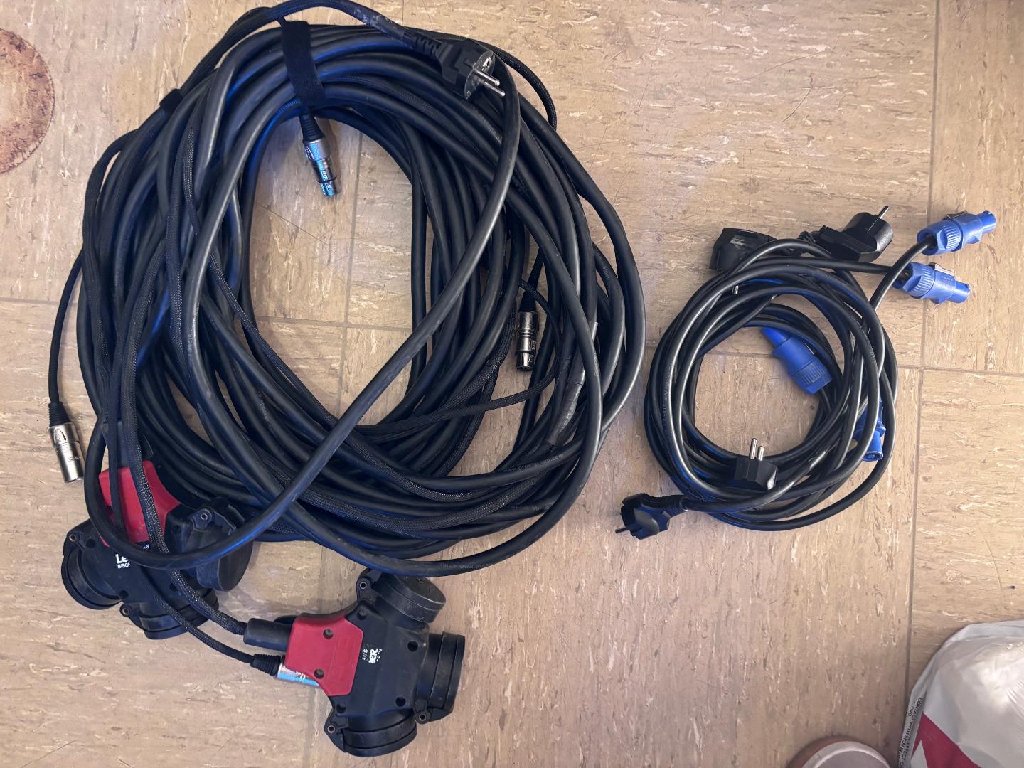 01x komplettes Kabelset : 2x 10m Hibrid Kabel (Powercon, Schuko, XLR), 2x Powercon-Schuko, 2x XLR Kabel