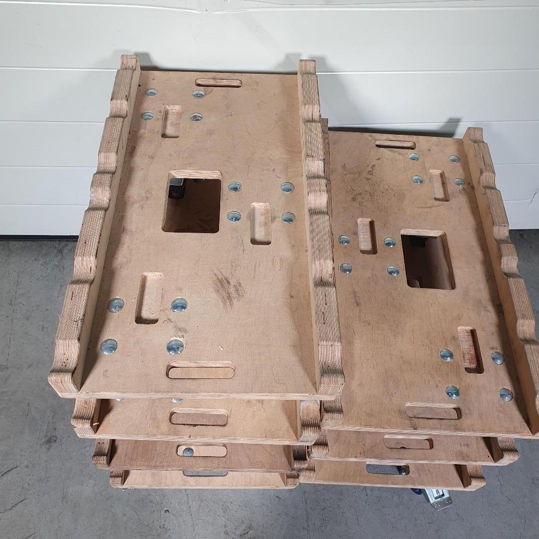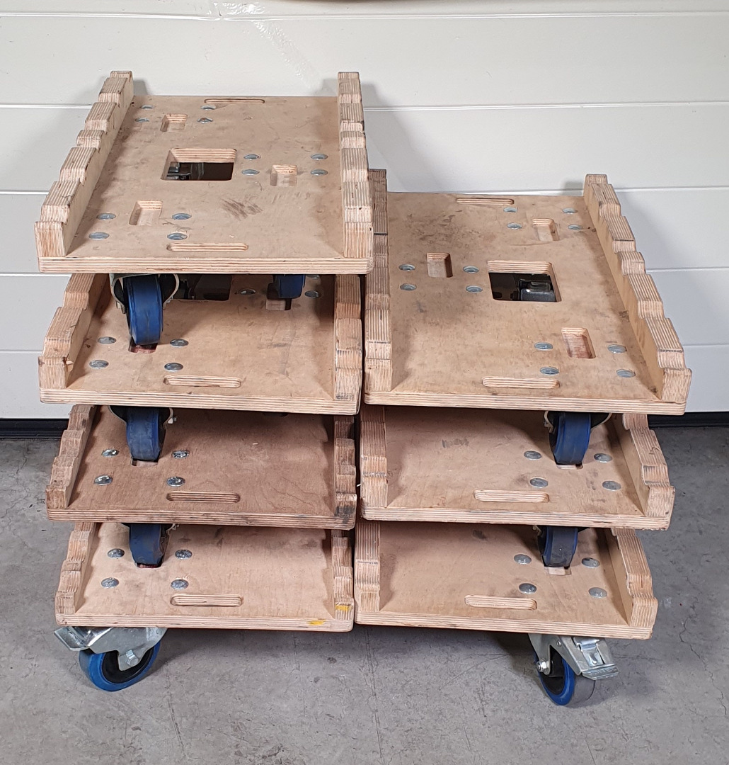 - 7x Rollbretter für Traversen mit 3 Lenkrollen & Reifeneinkerbung – stapelbar, robust