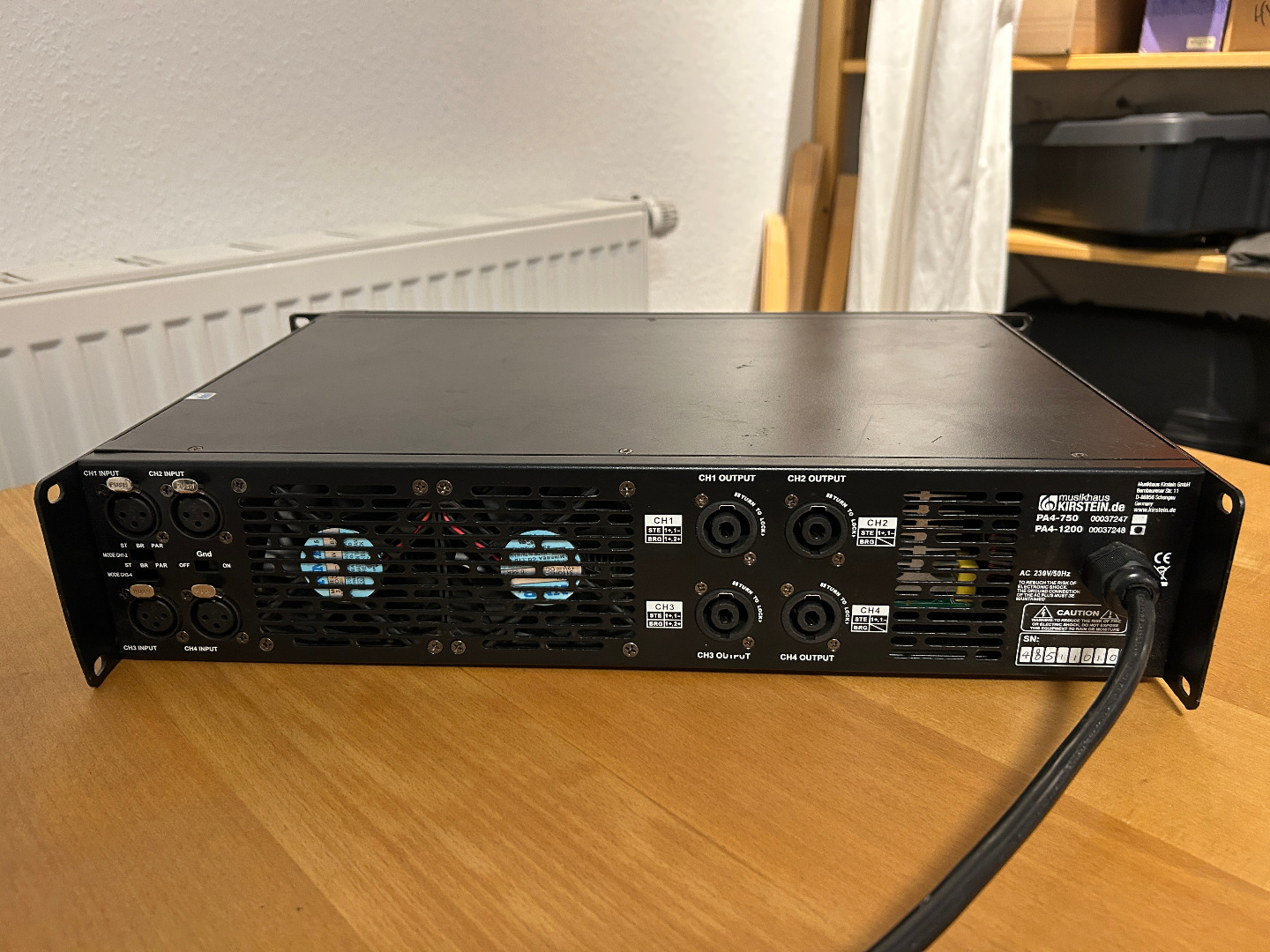 Biete eine leichte und Leistungsstarke 4-Kanal Endstufe 2HE in gutem Zustand an. Die Zahlen sprechen für sich: