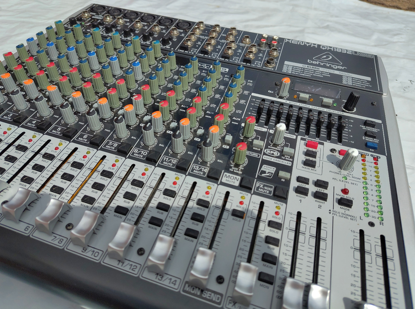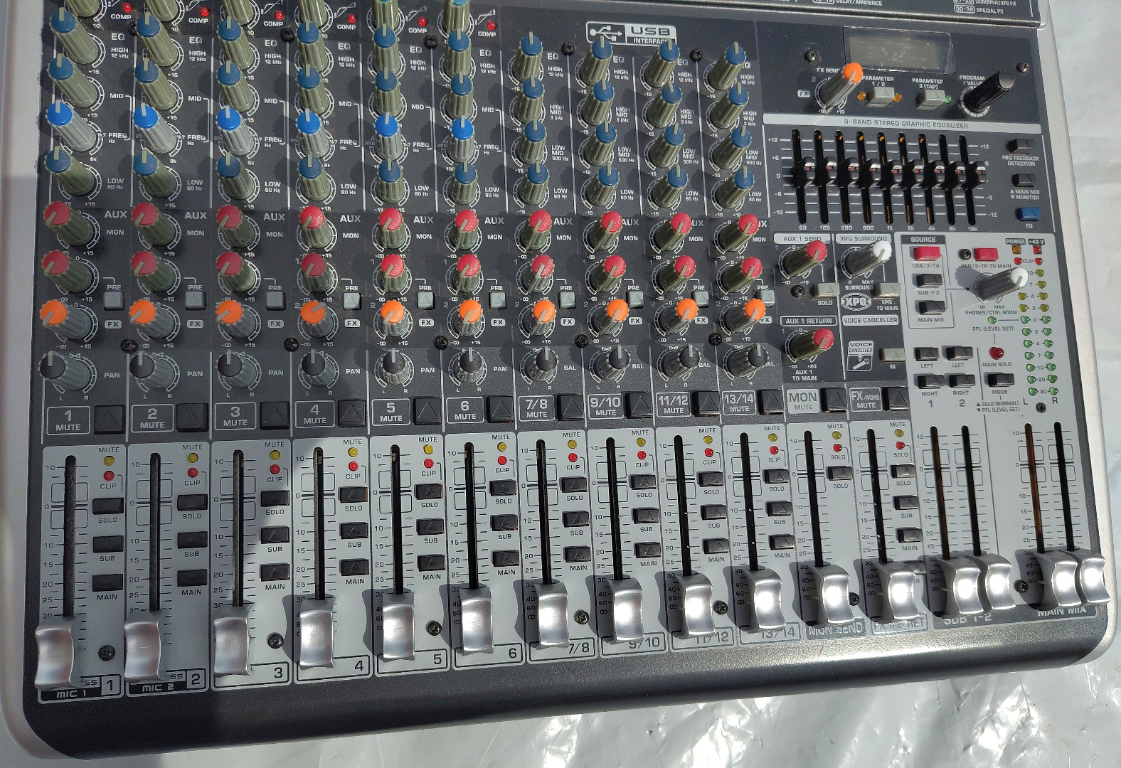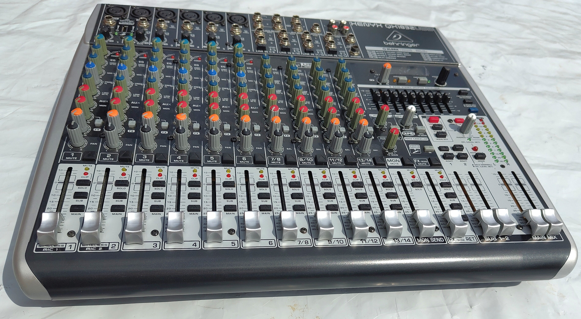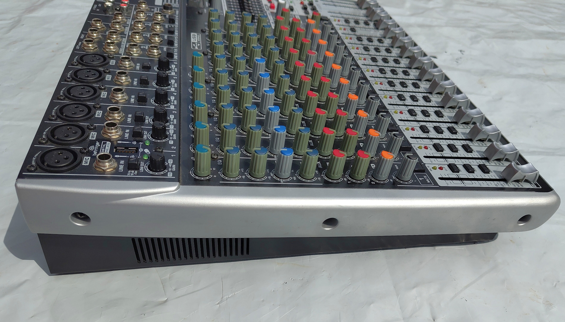 For sale is a Behringer Xenyx QX1832USB mixing console, including the Thomann Behringer Xenyx 1832 FX case.