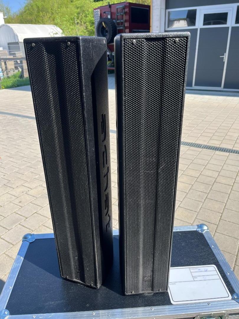 Die Lautsprecher haben unten den Winkel-verstellbaren Adam Hall Boxenflansch nachgerüstet.
