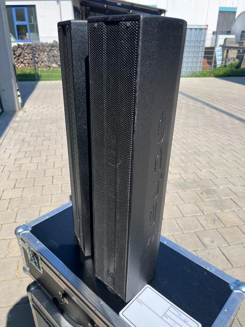 Die Lautsprecher haben unten den Winkel-verstellbaren Adam Hall Boxenflansch nachgerüstet.