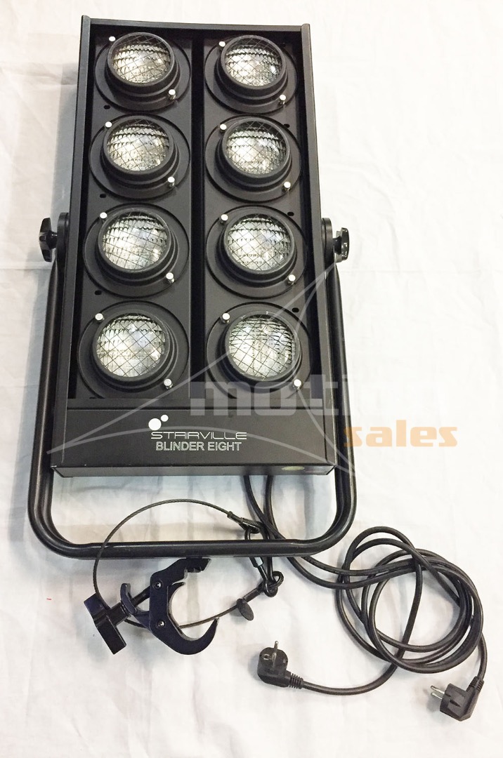 Der 8 Fach Blinder. Immer noch ein energiereicher Effekt, der zum Blendeffekt eben auch noch spürbare Wärme an das Publikum abgibt. Bestens geeignet für „Mitsing“ Passagen bei Konzerten.