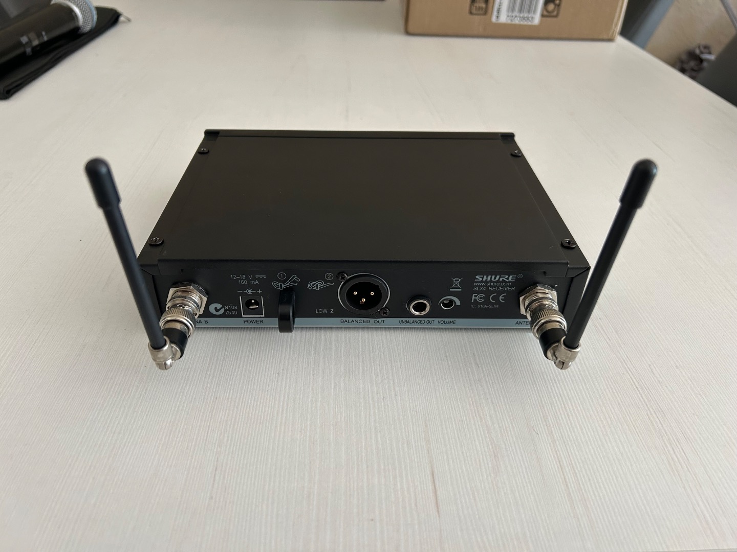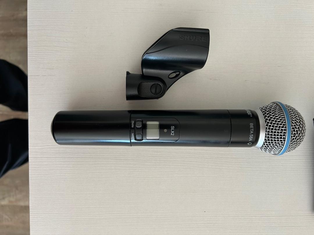 Das Set besteht aus einem SLX4 Empfänger und einem Handsender SLX 2 mit Mikrofon Kopf Beta 58a Wechselkopf +Klammer dazu das Netzteil. ein 19 Rack Einbaukit und 2 Antennenkabel Das Set ist gebraucht in einem guten Zustand und ist voll funktionstüchtig.Es sind 2 identische Sets im Angebot. Der Preis ist für ein Set.
