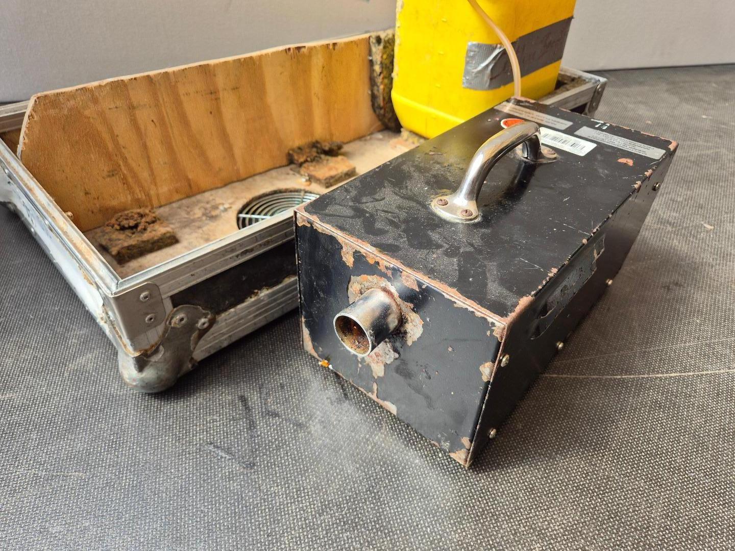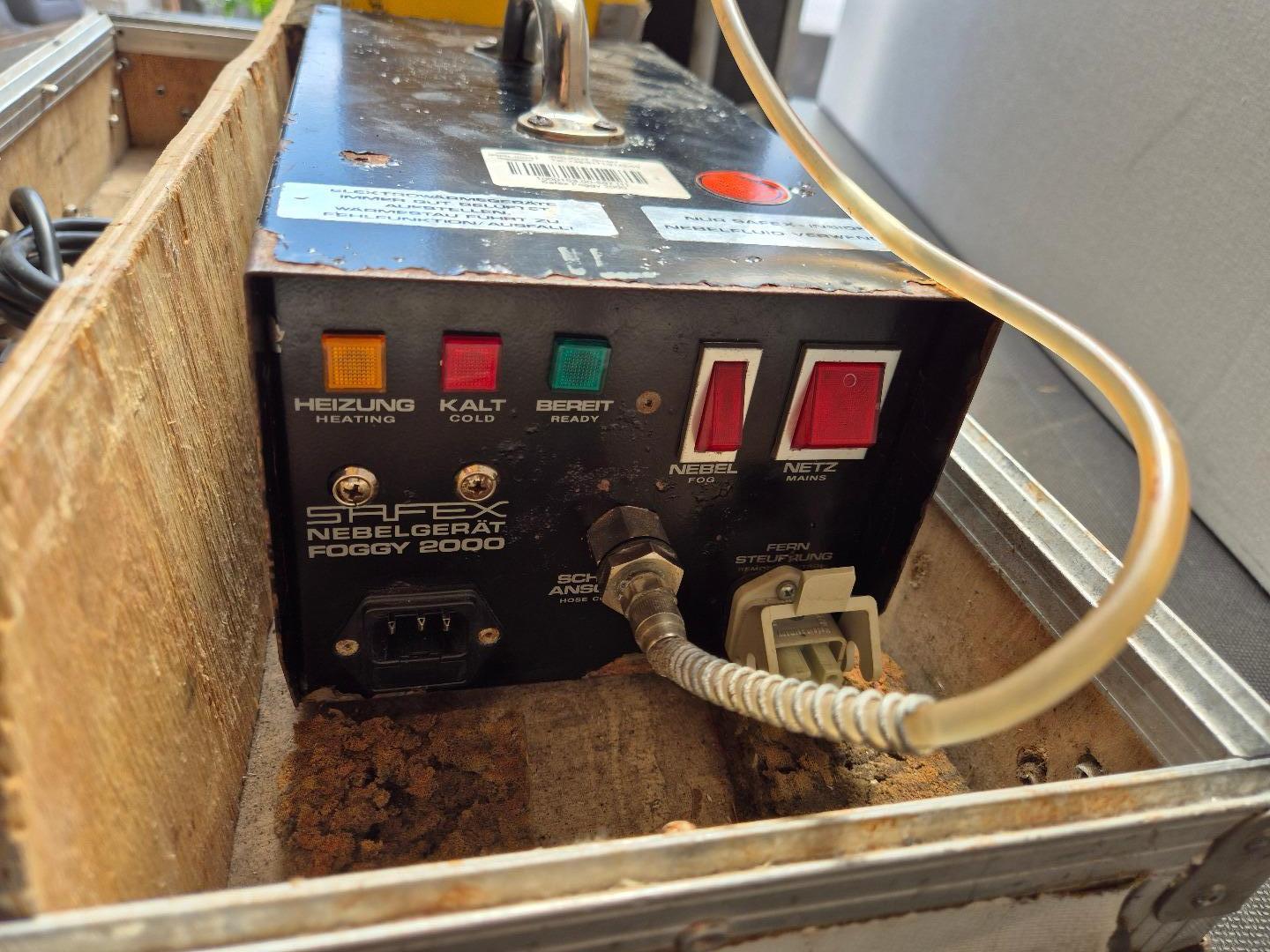 Zum Verkauf steht eine Safex Foggy2000 Nebelmaschine, die schon ein paar Jahre auf dem Buckel hat. Das Case ist incl und gut geeignet für Transport und Lagerung