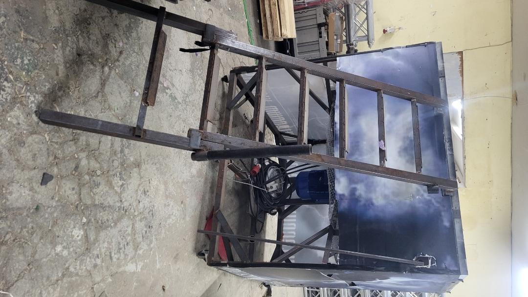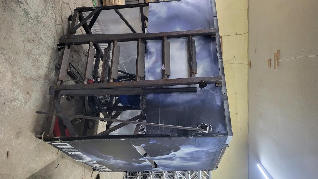 horizontal in schutzkäfig verbaut. mit transportrollen.