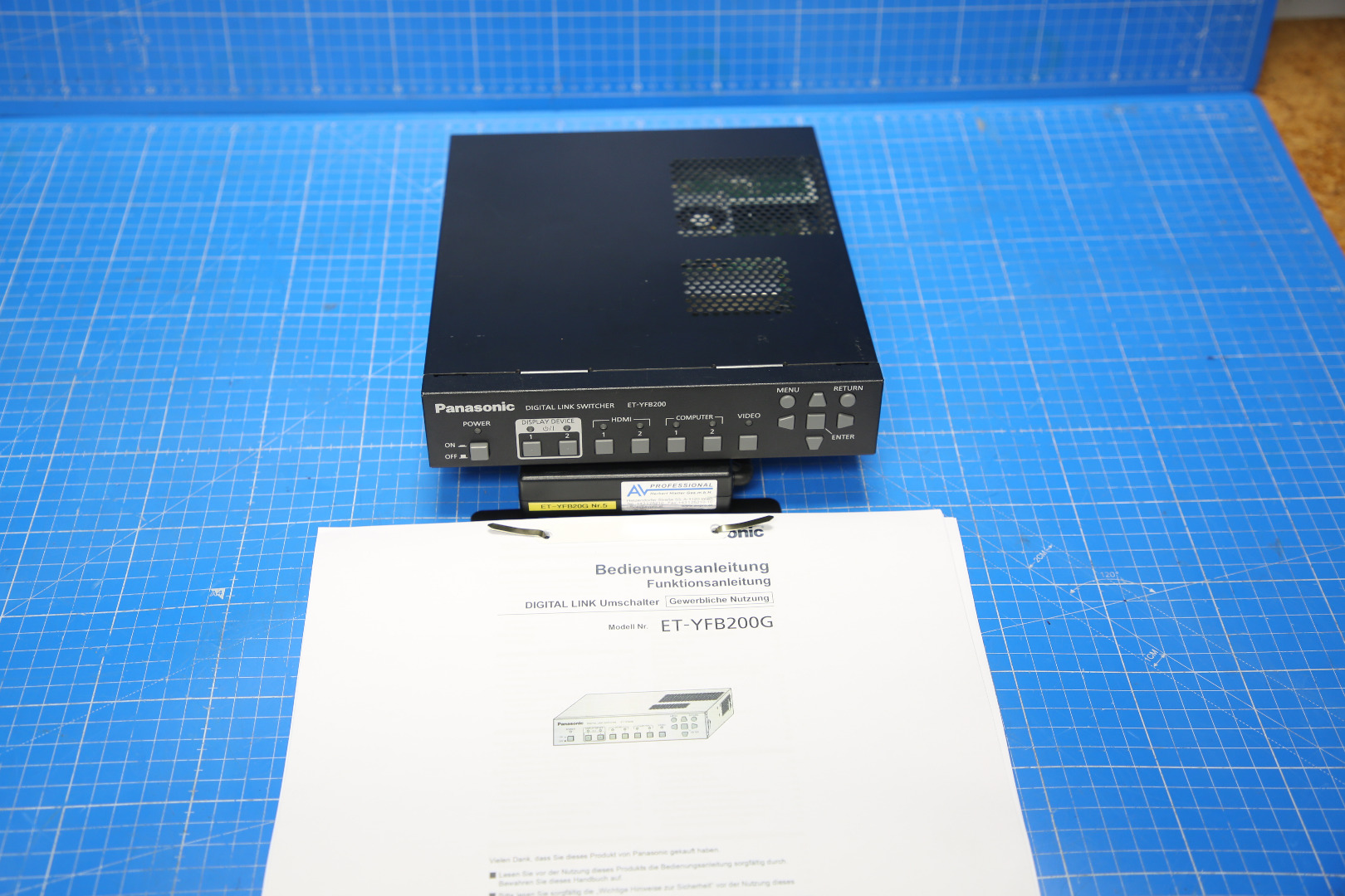 Erleben Sie eine klare und stabile Verbindung Ihrer Audio- und Videoquellen mit dem Panasonic ET-YFB200G Digital Link Switcher. Dieses hochwertige Gerät der renommierten Marke Panasonic ist ein unverzichtbarer Komponent im Bereich der Heimkino- und Multimedia-Equipment. Der Switcher ermöglicht eine einfache und schnelle Umschaltung zwischen Ihren Geräten und sorgt für eine störungsfreie Übertragung. Ideal für anspruchsvolle Audiophile und Home-Entertainment-Enthusiasten, die Wert auf eine makellose Ton- und Bildqualität legen.