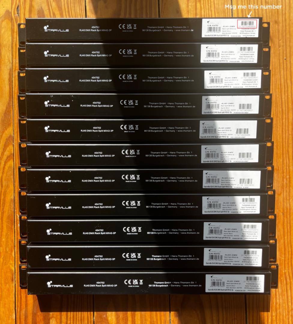Bitte beachten: ich habe die Rack-Splitter nur mit anderen Stairville-Produkten betrieben, z.B. einer "Stairville RJ45 DMX Split Box MX4". Andere RJ45 Lösungen sind nicht zwangsläufig kompatibel, das habe ich z.B. mit der "sssnake Cat Snake 3MB" getestet.