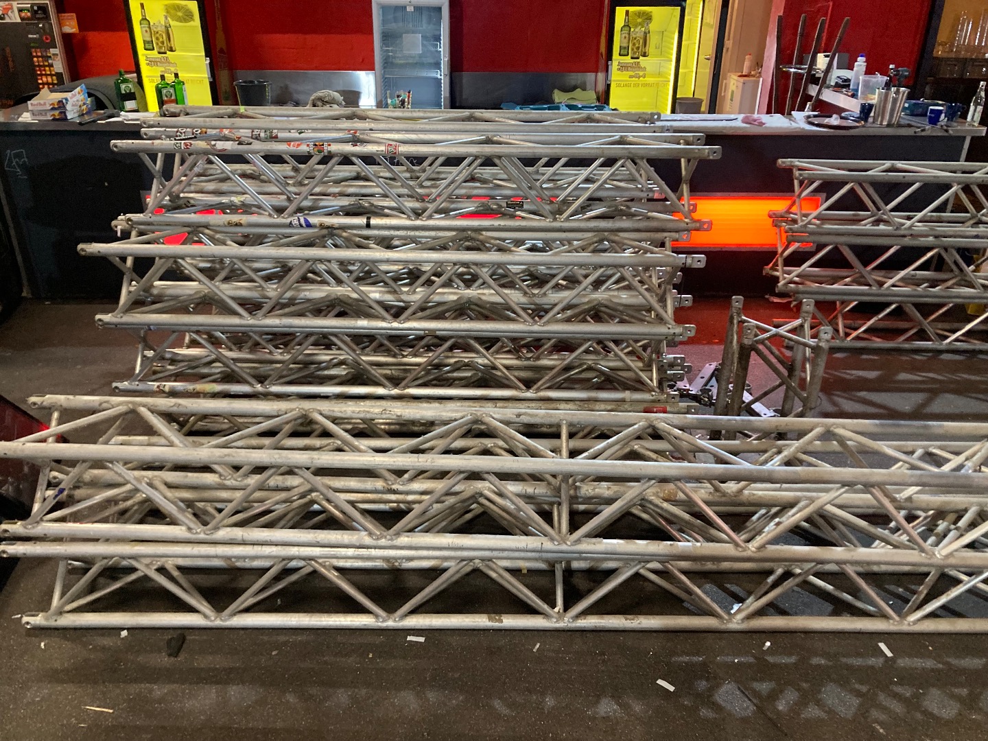 Noch sind die Traversen in dem Club installiert, werden aber vsl. in KW 39 ausgebaut. Die Traversen werden nur komplett und gegen Abholung in Augsburg verkauft!