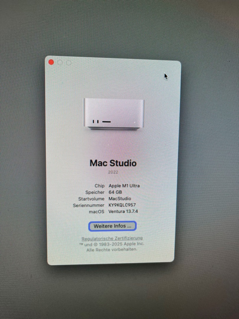 Apple Mac Studio M1 Ultra (2022) - 1 TB SSD - 64 GB RAM im Originalkarton und Lieferumfang. original Auslieferungszustand eine. kleine Tatstatur und Trackpad in silber, im Wert von 90,- Euro können für 49,- Euro erworben werden . Ich biete auch einen 27" Monitor, View Sonic VP2768A, farbkalibriebar, an. . und große Tastaturen an. z.B. Apple Magic Keyboard mit Touch ID und Ziffernblock für 119,- Euro